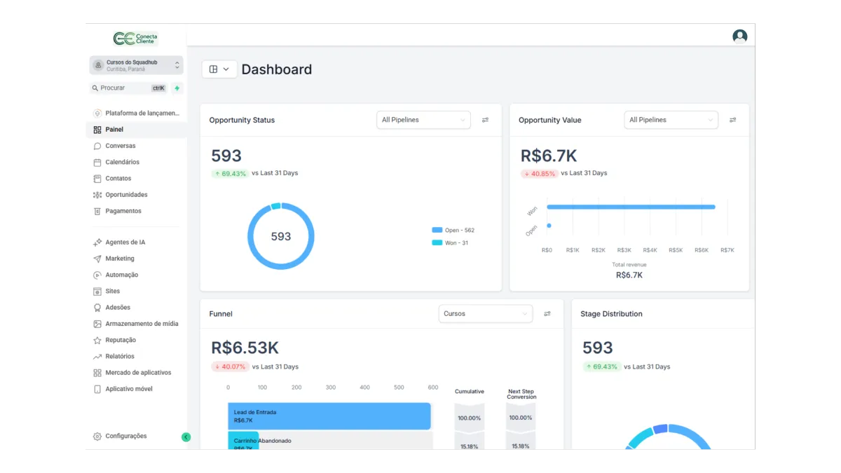 O Conecta Cliente entra em contato para coletar feedback, pode solicitar avaliação no Google e ainda abrir oportunidades de venda complementar quando aplicável.